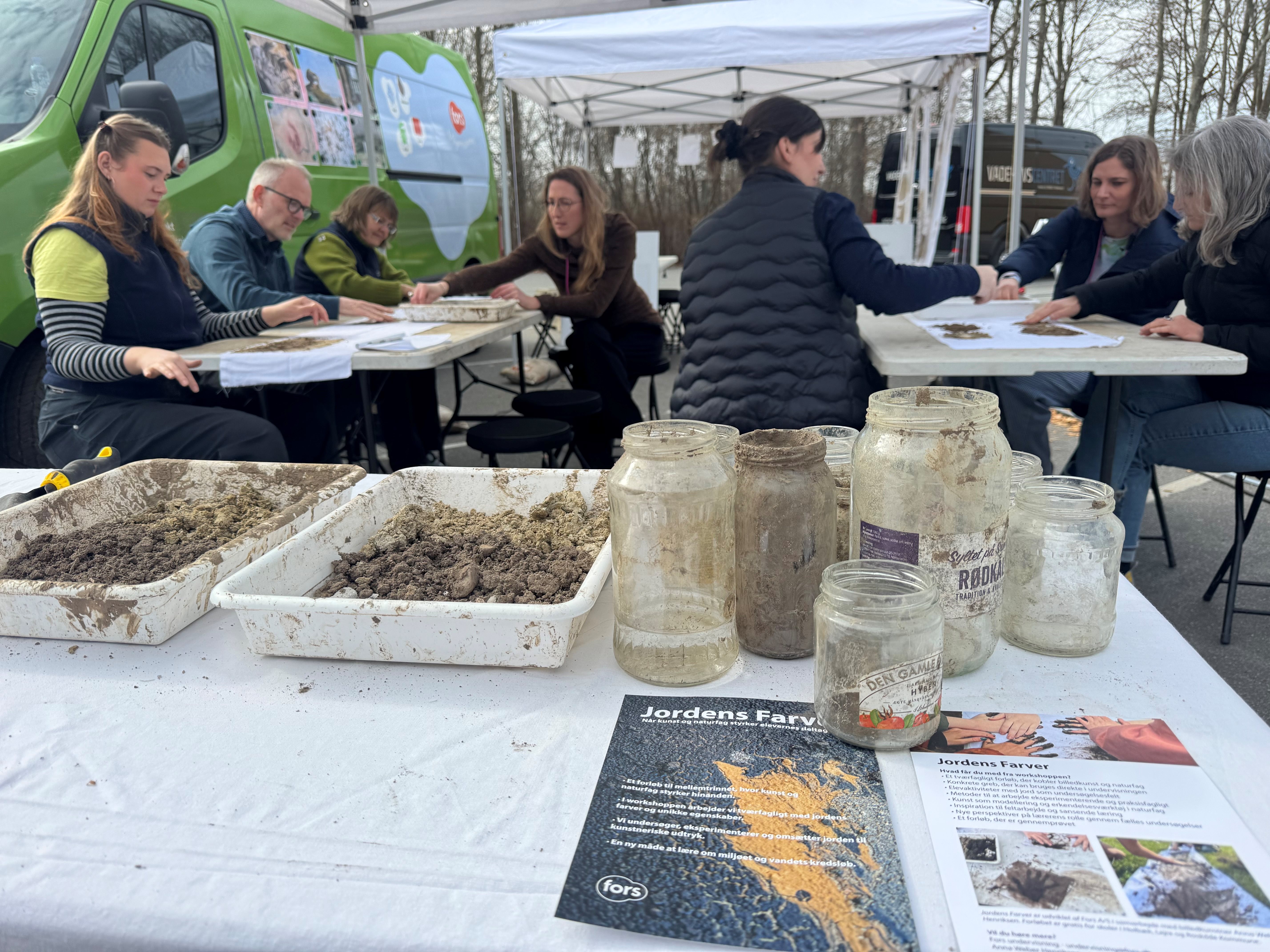 Konferencen, som bl.a. er arrangeret af Naturvidenskabernes Hus, havde i år et stort udendørs vandværksted, hvor man kunne opleve og blive klogere på vandets udfordringer og muligheder gennem konkrete og visuel formidling. Lige ved siden af kunne deltagerne møde FORS’ skoletjeneste-koncept Miljømissionen, hvor formidler Ida Torp Girotti sammen med billedkunstner Anna Weber Henriksen stod bag workshoppen “Jordens Farver”. Her arbejdede deltagerne med jord som indgang til at forstå grundvandets dannelse og kvalitet. Workshoppen viste, hvordan kunst og praksisfaglighed kan styrke elevernes forståelse og evne til at omsætte indtryk til egne udtryk. Med kombinationen af naturfag og æstetiske læreprocesser kan de opleve, hvordan jordlag spiller en afgørende rolle i rensningen af det vand, vi senere henter op som drikkevand.