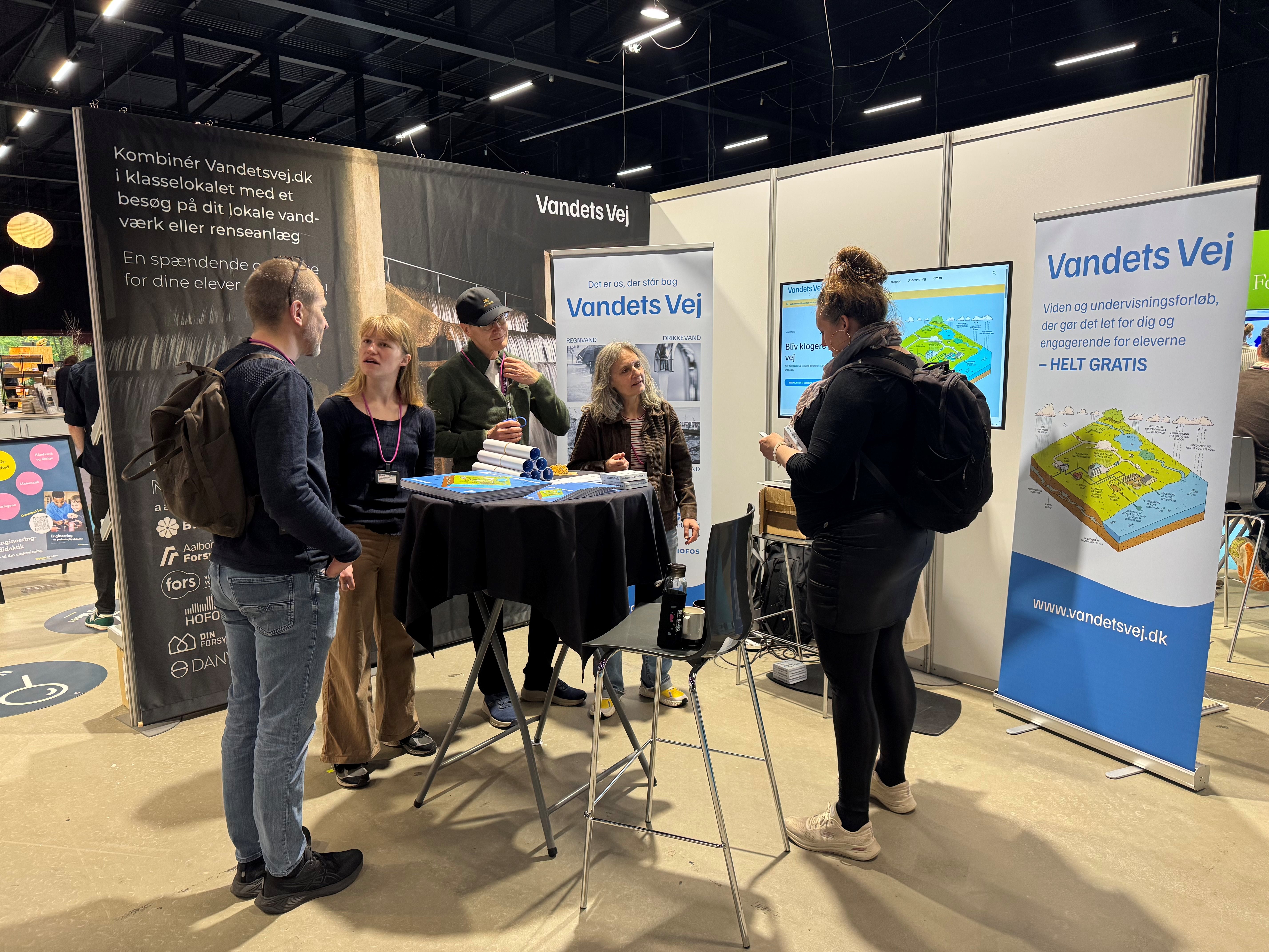 Indenfor stod en række formidlere fra skoletjenester i vandselskaberne bag flere oplæg og workshops om inspirerende undervisning om vand i eksterne læringsmiljøer. Og i det centralt placerede messeområde stod repræsentanter for vandsektorens undervisningsportal, Vandets Vej, klar på en stand for at vise landets undervisere den nylancerede hjemmesides mange muligheder.